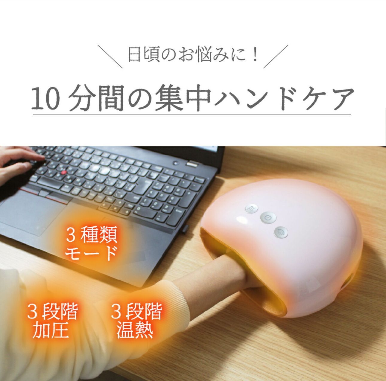 3種類のモードと3段階の温熱・加圧で、手の疲れをしっかりリセット。